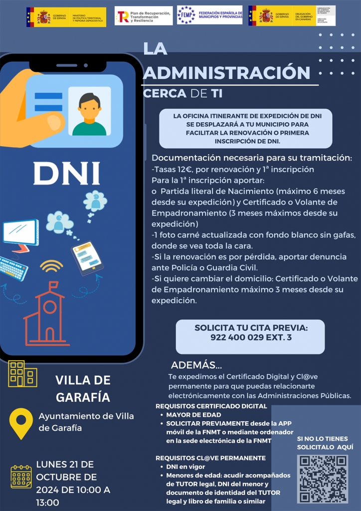 La oficina itinerante de expedición de DNI se desplazará a tu municipio para facilitar la renovación o primera inscripción de DNI.